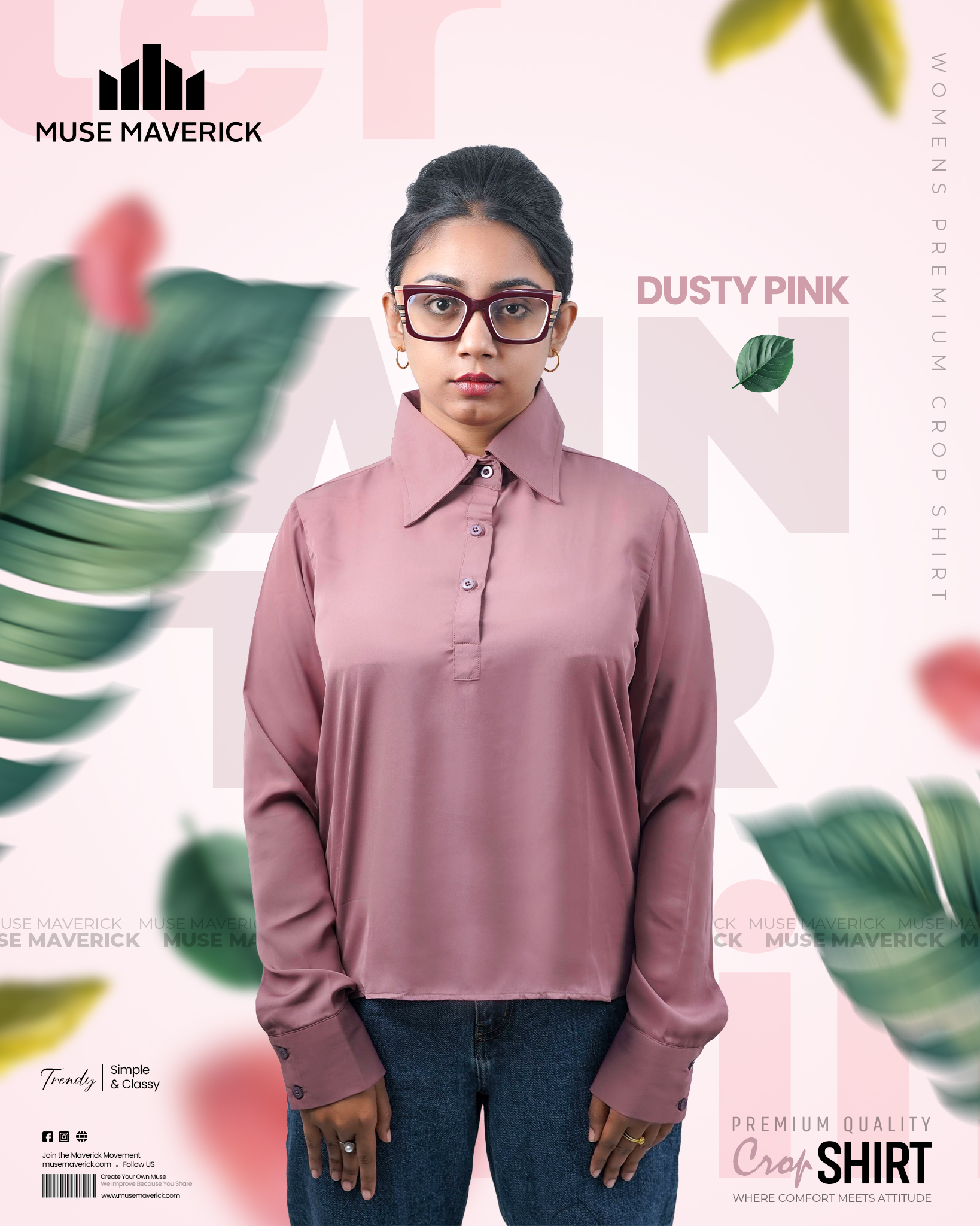 Dusty Pink Crop Shirt Sizes available M, L, XL, XXL.